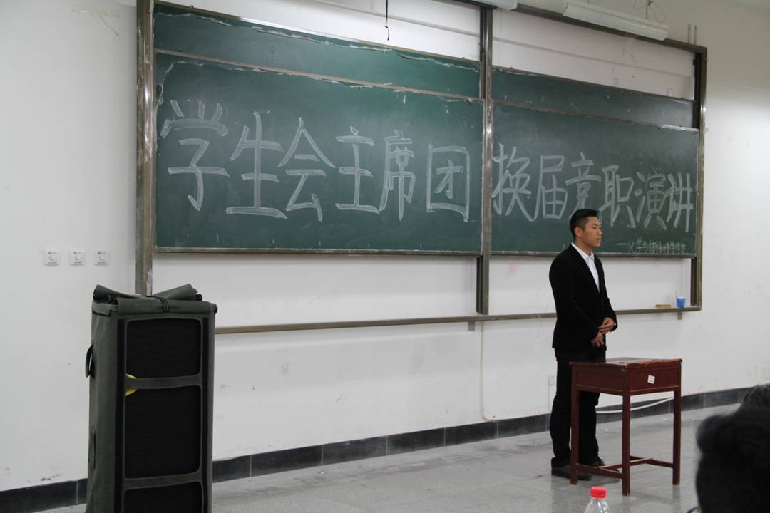 活动伊始,团总支鲁书记发表讲话,强调此次竞选的公平性,及投票者选举时的可靠性。竞选主席的九位学生会骨干进行了慷慨激昂的演讲,体现着他们在工作中的勤勤恳恳,兢兢业业,侃侃而谈他们对未来学生会发展的创意想法。九位竞选者演讲结束后,于书记强调此次活动的重要性和意义,并告诫学生会成员不要疏于学习,学生的本职是学习,要在学习与工作间找到一个平衡点。伴随着阵阵掌声,竞选演讲圆满结束。