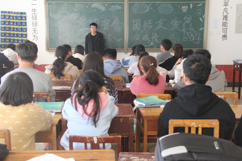 团日活动开始前,各班团支书向同学们传达活动主题,组宣委员组织同学参加活动各班同学踊跃报名,积极设计板报,准备演讲。下午2点,团日活动正式开始,同学们在台上积极分享宿舍中发生的趣事,以及在宿舍中良好的学习习惯。其中,化学本1902班采用击鼓传花的游戏形式,充分调动同学们的积极性。最后,活动在同学们的欢声笑语中结束。