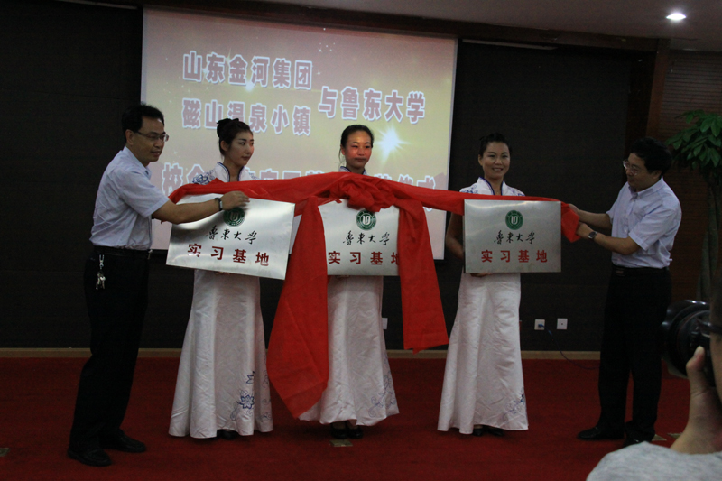 本次实习基地由化学院、商学院和山东金河集团、烟台磁山温泉小镇、烟台金海化工有限公司共同建设。参加基地揭牌仪式的还有商学院党总支书记杜庆君、副书记周建伟,化学院党总支副书记于兆玲。