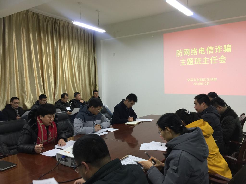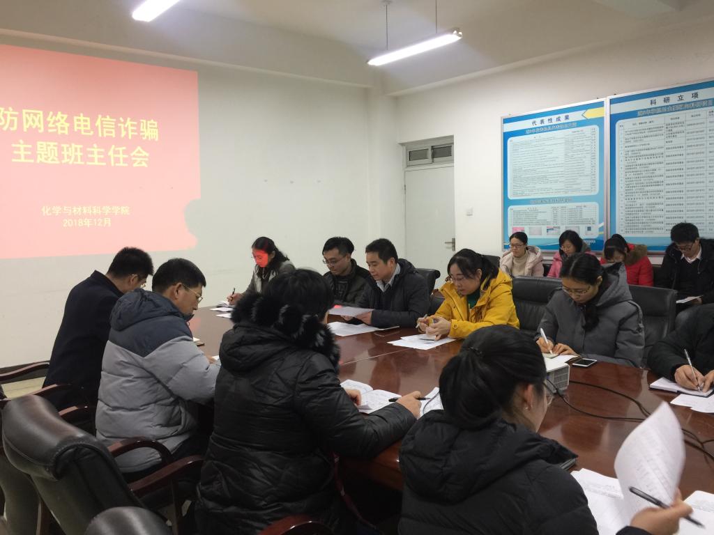 2018年12月11日下午13:40,我院于生化大楼A313召开防网络电信诈骗主题班主任会议,学院党总支副书记于兆玲主持,各年级全体班主任参与。
