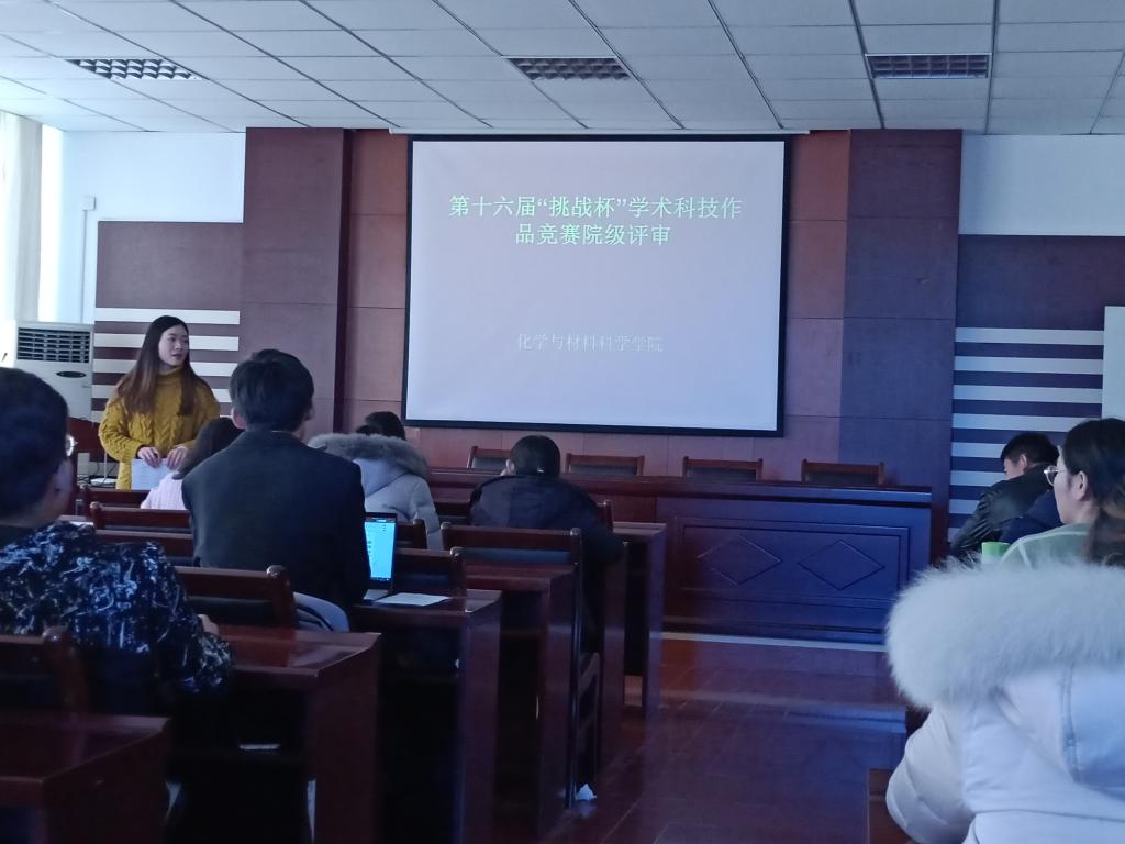 12月14日下午2:00,hg8868皇冠登录入口手机版第十六届“挑战杯”学术科技作品竞赛院级评审在生化大楼A307如期举行。团总支老师李楠主持,各团队指导教师以及在团队成员参与。