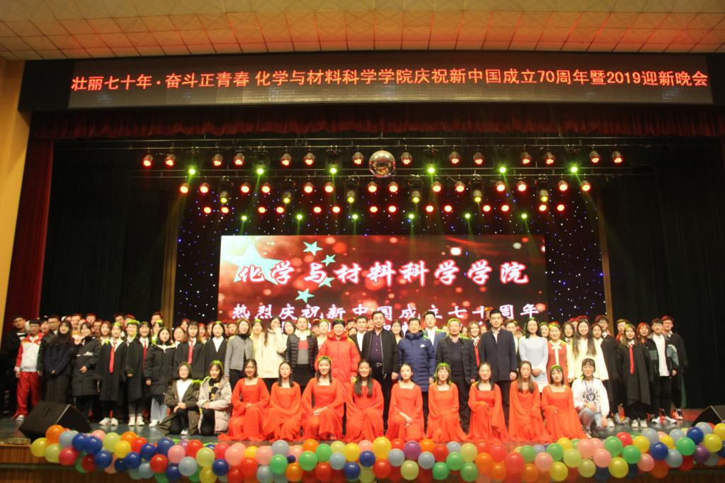 晚会在大学生艺术团、声动音乐联盟带来的激光舞中拉开了帷幕,富有节奏感的音乐、炫酷的服装及舞台效果点燃了全场的气氛。配乐诗朗诵--《时代在召唤》诵出了学院全体师生对新中国的热爱,表达了不辱伟大使命的决心。“歌舞串烧”彰显了学子们活力飞扬、挥洒青春的热情。教师、班主任代表娄楠演唱的歌曲《和你一样》使全场沸腾起来,“日子那么长,我在你身旁,见证你成长让我感到充满力量!”词意传递着教师们对学生成长路上的关怀与祝愿。晚会以一曲《祖国不会忘记》完美落幕,表达了全体化学人胸怀祖国、奋斗不止的信念和决心。