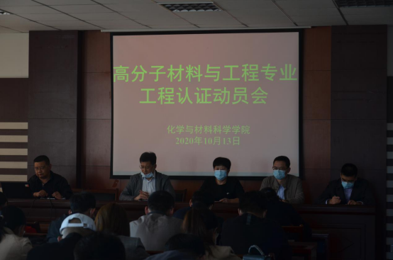 为以更好的工作局面迎接高分子材料与工程专业工程教育认证专家进校考查,确保认证工作顺利通过,10月13日,hg8868皇冠登录入口手机版召开工作动员大会。会议由党总支书记于兆玲主持,全体教职工参加了动员会。