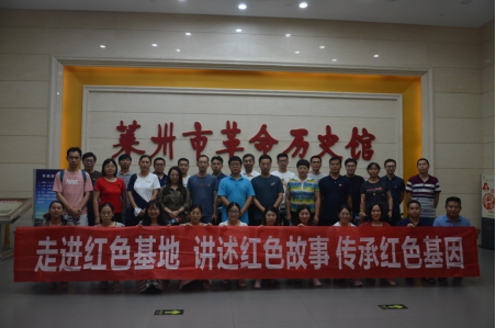 在莱州市革命历史馆大家了解了掖县党组织在新民主主义革命时期领导莱州人民进行革命斗争的光辉历程,学习感悟革命先辈英勇献身革命的光荣事迹,面对党旗重温入党誓词。最后,大家齐声合唱《我和我的祖国》,用歌声抒发对党的热爱,对党领导人民取得辉煌建设成就的深切赞美,响亮的歌声告慰着革命先贤,祝福着伟大的祖国在党的英明领导下繁荣富强。