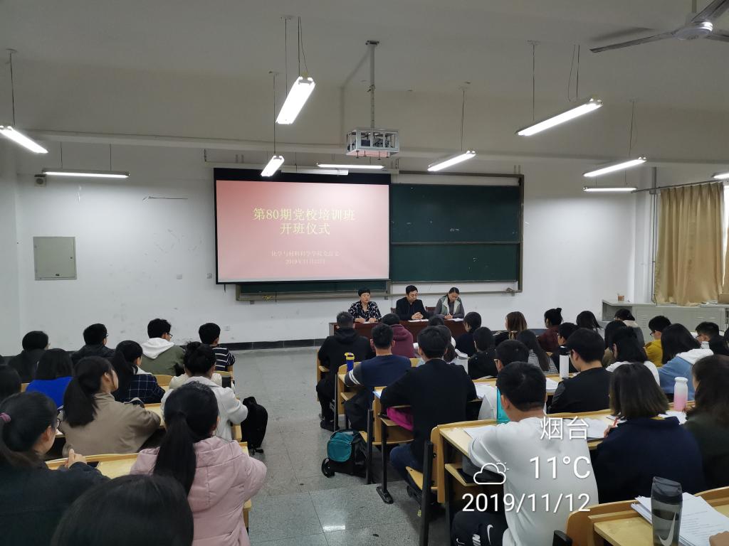 2019年11月12日下午,hg8868皇冠登录入口手机版于生化大楼A304举行第八十期党校培训班开班仪式。开班仪式由党总支副书记于兆玲主持,学院党总支书记李景奎、组织员曲文娟以及学生党员、发展对象、入党积极分子共计200余人出席参加。