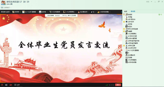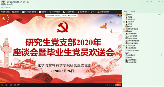 为提升毕业生党员服务社会理念,提高党性修养和思想觉悟,hg8868皇冠登录入口手机版研究生党支部创新毕业生党员教育方式,5月26日通过网络召开了“研究生党支部2020年座谈会暨毕业生党员欢送会”。支部书记刘训恿主持,研究生党支部全体党员参加。