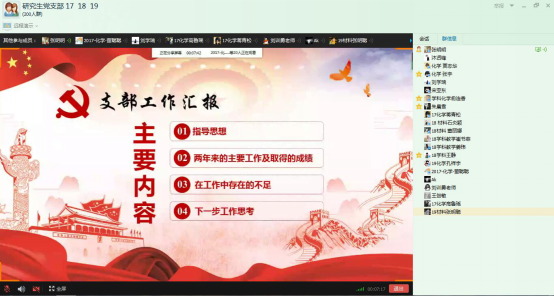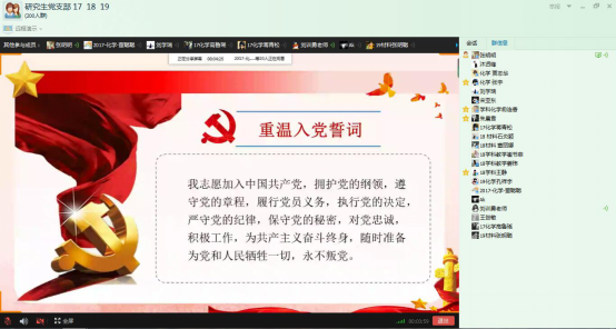 刘训恿介绍了主要议程,就毕业生离校工作及未来如何发挥好党员模范引领作用提出了要求,组织委员贾志华带领全体党员重温入党誓词,支部副书记张明明就党支部换届之后的工作进行总结。