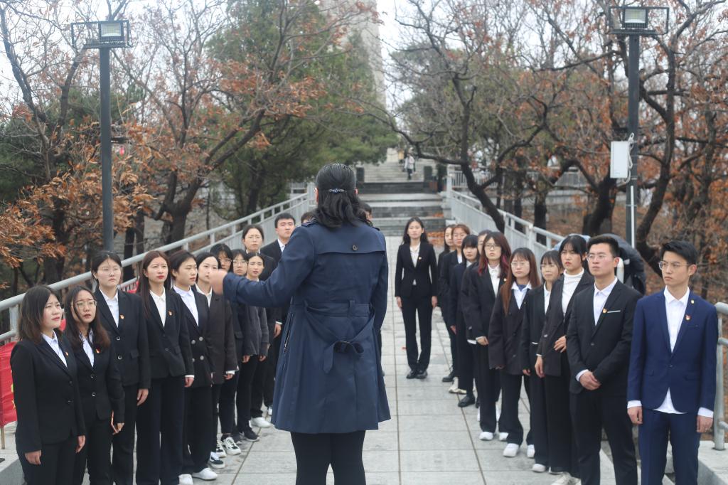 首先,同学们在烈士纪念堂聆听了胶东抗日战争历程及十余位胶东著名烈士的英雄事迹。在铭刻着牺牲在胶东土地上的抗日20850名烈士的胶东抗日烈士纪念塔前,全体党员逐一向革命先烈们敬献鲜花,肃立默哀,对长眠的革命先烈致以崇高的敬意和深切的悼念,响亮的入党誓词回荡在苍松翠柏之间,发出了对党忠诚,永不叛党的铮铮誓言,表达了为共产主义事业奋斗终生的决心。