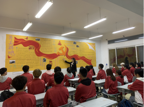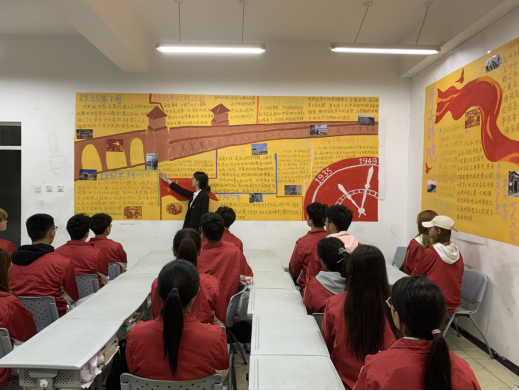 开展党史教育“我领学”活动。每天,学生党员、学生骨干组成宣讲团会轮番在教室内宣讲党史手绘墙内容,宣传、介绍中国共产党百年来许多具有重大意义的转折点事件,带领同学们领略党的发展历程取得的辉煌成就。有的讲述“中共一大到开国大典”,既有中国共产党人不惧外敌顽强斗争的英勇事迹,也有中国人民万众一心众志成城建立新中国的不懈努力。有的讲“改革开放的历史”;有的讲述“1979年至2021年全面进入小康社会之间的历史”;有的讲述“伟大的五四精神、长征精神、抗美援朝精神”,以此帮助同学们理解 “中国共产党为什么能”,使同学们倍受鼓舞。