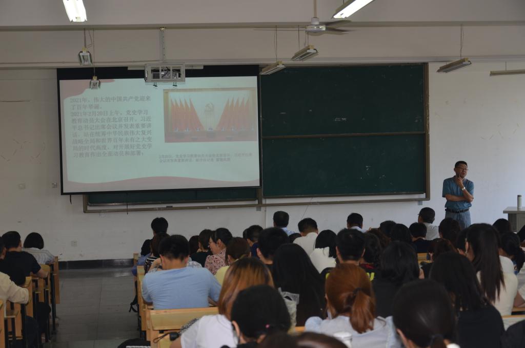 6月8日,学校党史教育宣讲团专家、马克思主义学院郭同峰教授应邀到hg8868皇冠登录入口手机版,以《中国共产党的百年理论探索史及启示》为题作党史学习教育专题宣讲辅导,学校党史学习巡回指导组第四组李景奎组长莅临指导。党总支书记于兆玲主持,全体教职工和部分学生党员200余人参加辅导。
