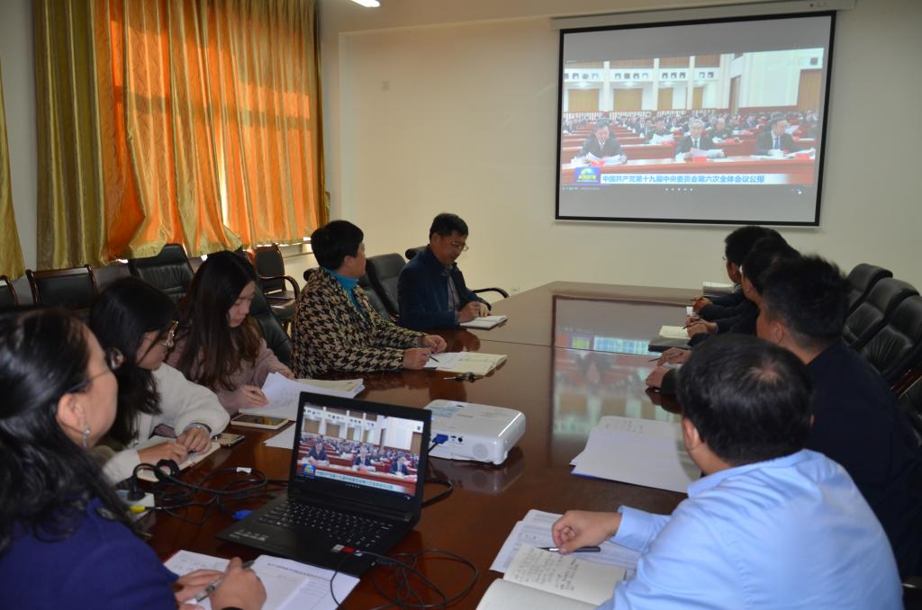 11月23日,hg8868皇冠登录入口手机版党委理论学习中心组(扩大)集体学习,集中学习党的十九届六中全会精神。学院党委委员会成员、领导班子成员及科级以上干部参加,党委书记于兆玲主持。