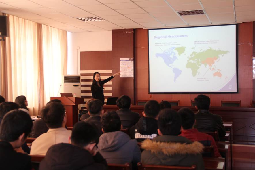 宣讲会上,招聘单位负责人借助多媒体演示,向同学们介绍公司概况、发展方向以及人员需求。富乐新材料有限公司是一家全球领先的粘合剂、密封胶、涂料和其他特种化学品解决方案供应商,总部设于美国。其核心精神是诚实、尽责、尊重、承诺。强调团队凝聚力和科技创新力。宣讲过程中,企业负责人对于同学们关于企业制度、工作环境等方面的问题做了详细解释,宣讲会现场交流融洽。