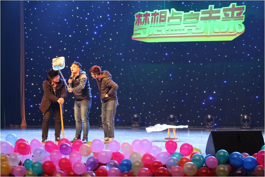 晚会围绕“让青春出彩”的主题,将“领导寄语”、“青春足迹”、“老师祝福”视频贯穿于“青春飞扬”、“青春点滴”、“青春出彩”三个篇章,并各自引领歌舞表演、小品相声、师生朗诵节目。青春活力的爵士舞蹈、自由曲风的八度乐队、清新悠扬的萨克斯独奏,赢得现场同学们阵阵掌声。新晋年轻教师的合唱曲“说爱你”、巧妙贯穿化学知识且见解独到的小品“双十二之后”,将整场晚会的气氛推向高潮。经久不息的掌声和真诚的欢笑声是同学们给予表演者们最好的肯定,精彩的迎新晚会最终圆满结束。