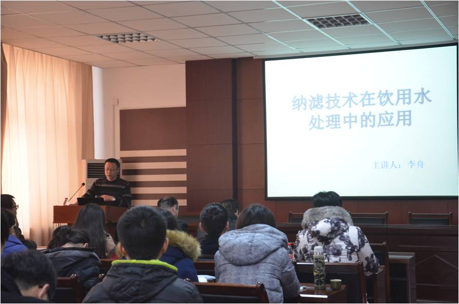 李舟博士系我校化学系化学专业84级本科生,1988年毕业,后继续在山东大学环境科学与工程学院深造,获环境学博士。现任山东碧水源环保科技有限公司总经理,北京碧水源科技有限公司投资总监,高级工程师。他用报告--“纳滤技术在饮用水处理中的应用”深入浅出地阐述了水知识及水处理的四种方式,激发人们对环境保护的意识,使聆听者得到很多启迪,也为在校生励志学好专业知识,报效国家起到激励作用。