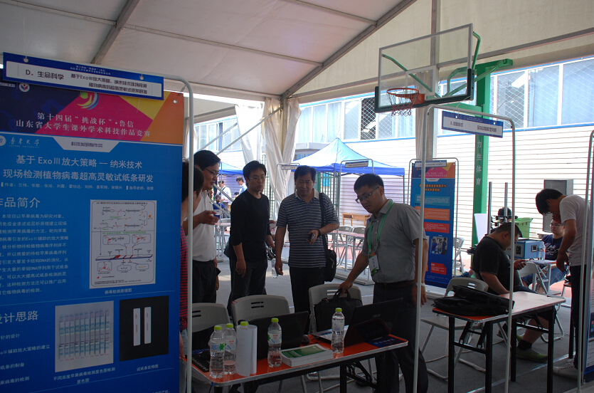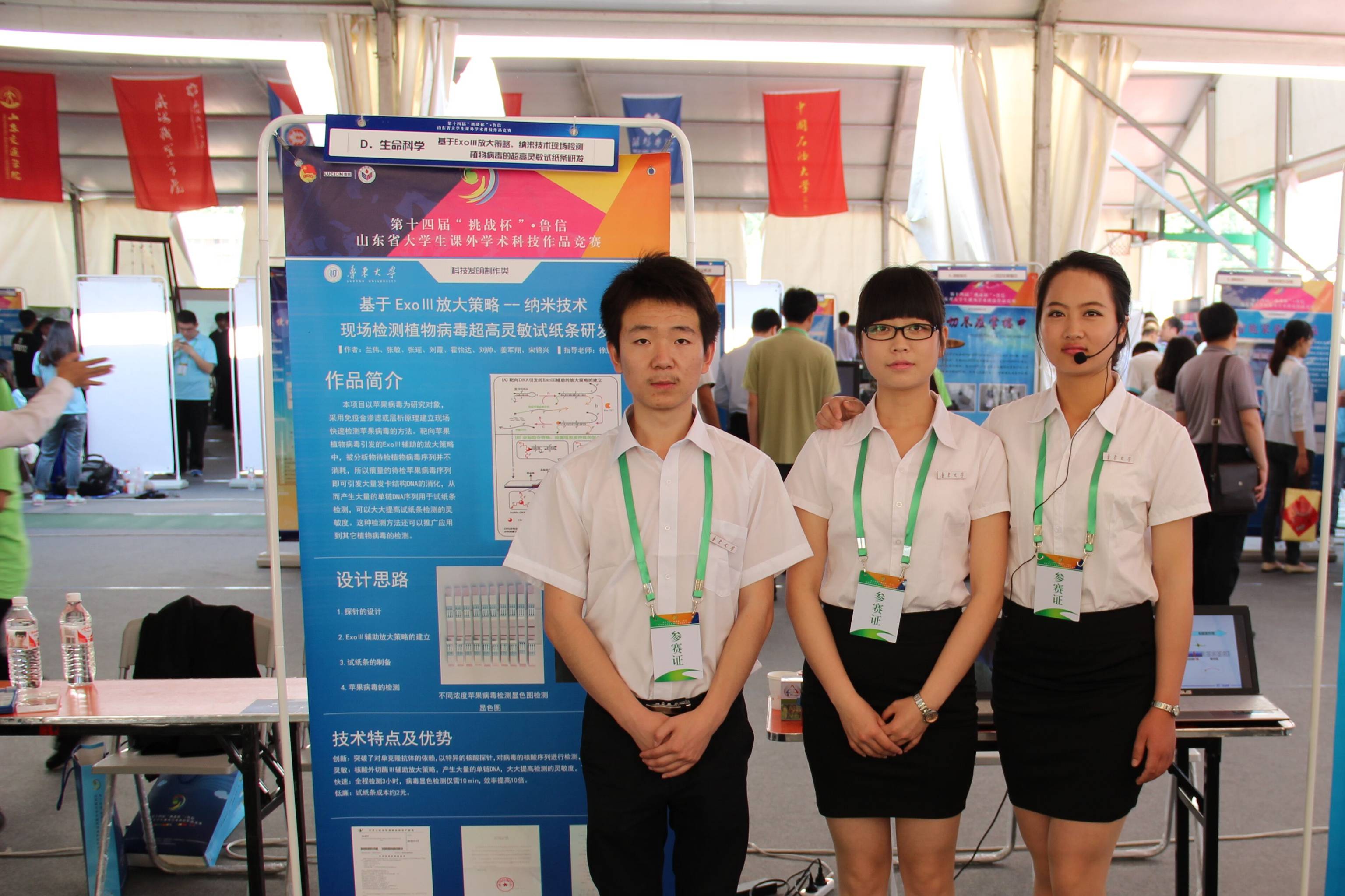 本届“挑战杯”山东省大学生课外学术作品竞赛由共青团山东省委、山东省科协、教育厅、科技厅、学联及鲁信集团共同主办。经过院级推荐、校级选拔、省赛网络评审、终审决赛等阶段的激烈角逐,学院推荐作品兰伟《快筛苹果病毒——基于ExoⅢ放大策略即时检测苹果病毒试纸条研发》获得生命科学类省级特等奖并成功晋级国赛,作品指导教师徐慧教授荣获优秀指导教师称号。同时,学院另外赵明月《安全、高效果蔬清洗剂系列产品的研发》和孙领民《超支化聚合物稳定的金纳米粒子高灵敏比色传感器》两支参赛队伍也在比赛中以优异的成绩荣获省级三等奖。