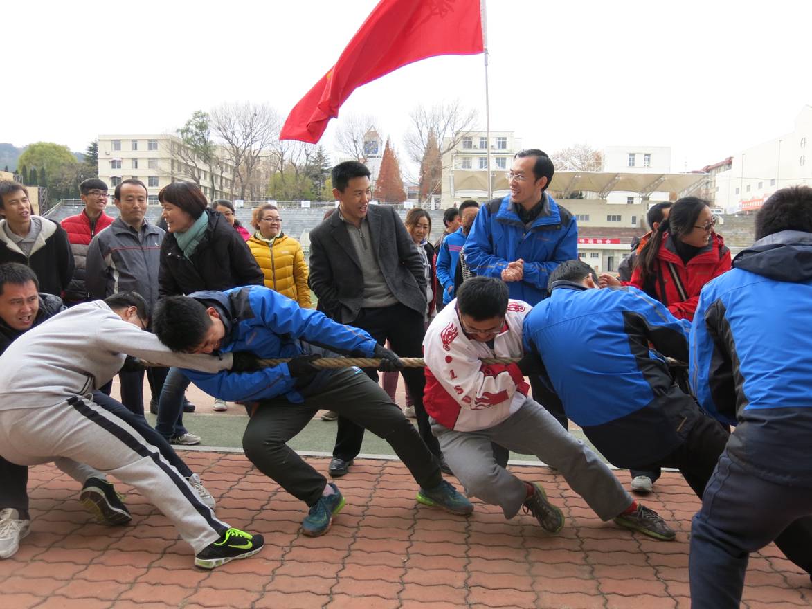 三、拔河比赛:每单位需报15人,队员14人至少有5个女队员参加,喊号1人,实行淘汰制,学院派出强大阵容以应对实力超群的体育学院代表队。比赛中,学院老师个个跃跃欲试绝不轻易放弃,由于实力差距最终惜败,但体院赢得也并不轻松。