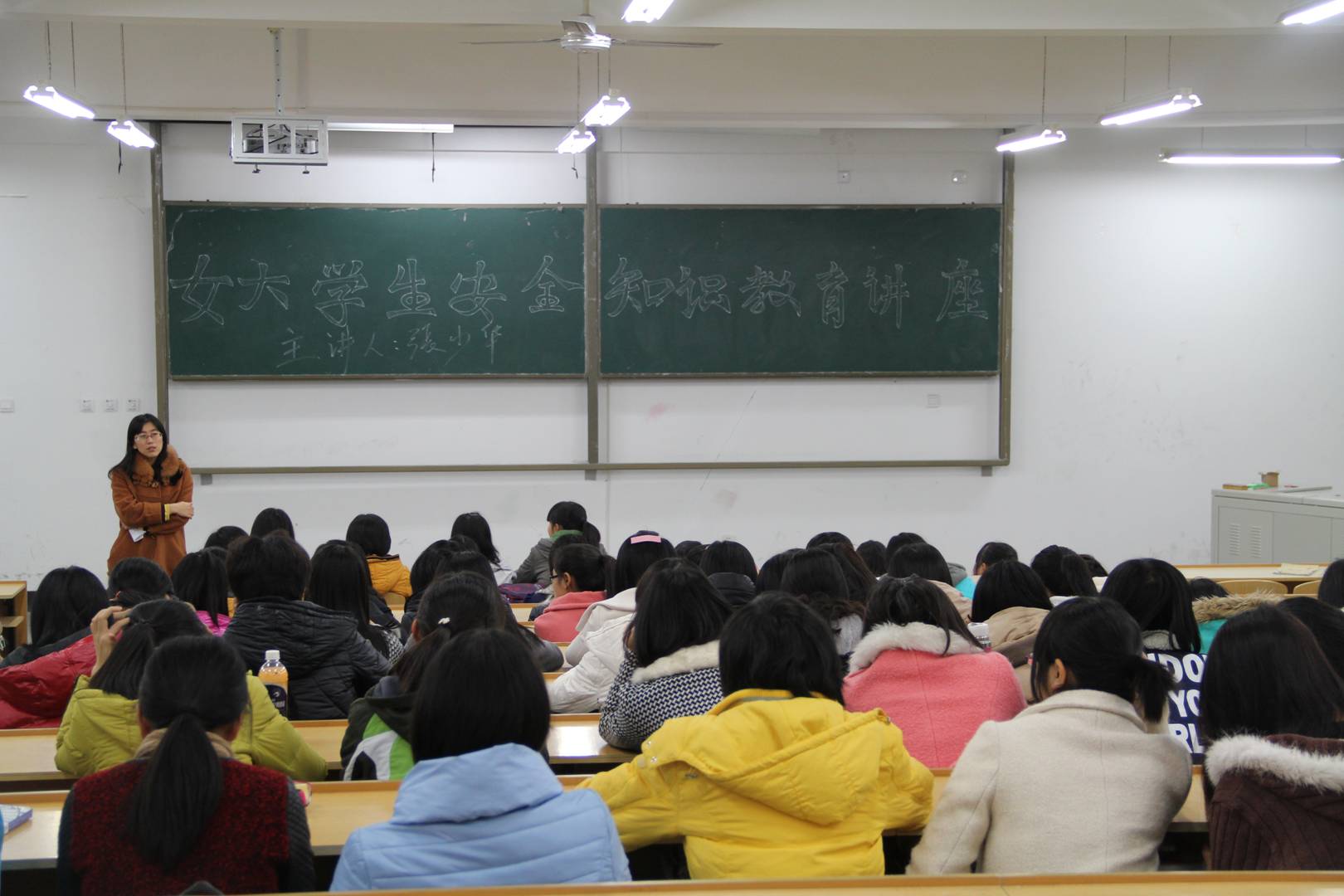 为做好女大学生的成长与安全教育工作,增强女大学生安全意识并提高其自身修养,hg8868皇冠登录入口手机版于11月24日晚在生化大楼A304举办“女大学生安全知识教育”讲座。本次讲座由我院张少华老师主讲,学生会女生部主办,14级全体女生参加此次活动。