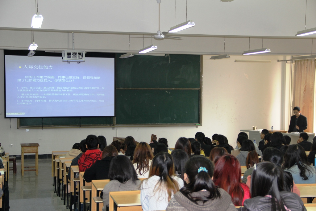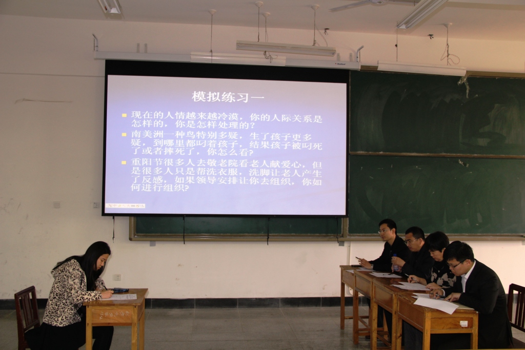 首先是杨明做“我眼中的结构化面试”专题辅导讲座,他以丰富、生动、幽默的语言形式及详实的案例对结构化面试进行了深入浅出的讲解,并就大学生最关心的热点问题现场进行了解答。随后,进行了现场模拟面试。人事处副处长吴旺宗、人事科科长杨明,hg8868皇冠登录入口手机版党总支副书记于兆玲及本年度已通过事业单位考试的杨方科同学担任面试考官,对参加面试的学生逐一进行了认真仔细的评判、讲解与指导。