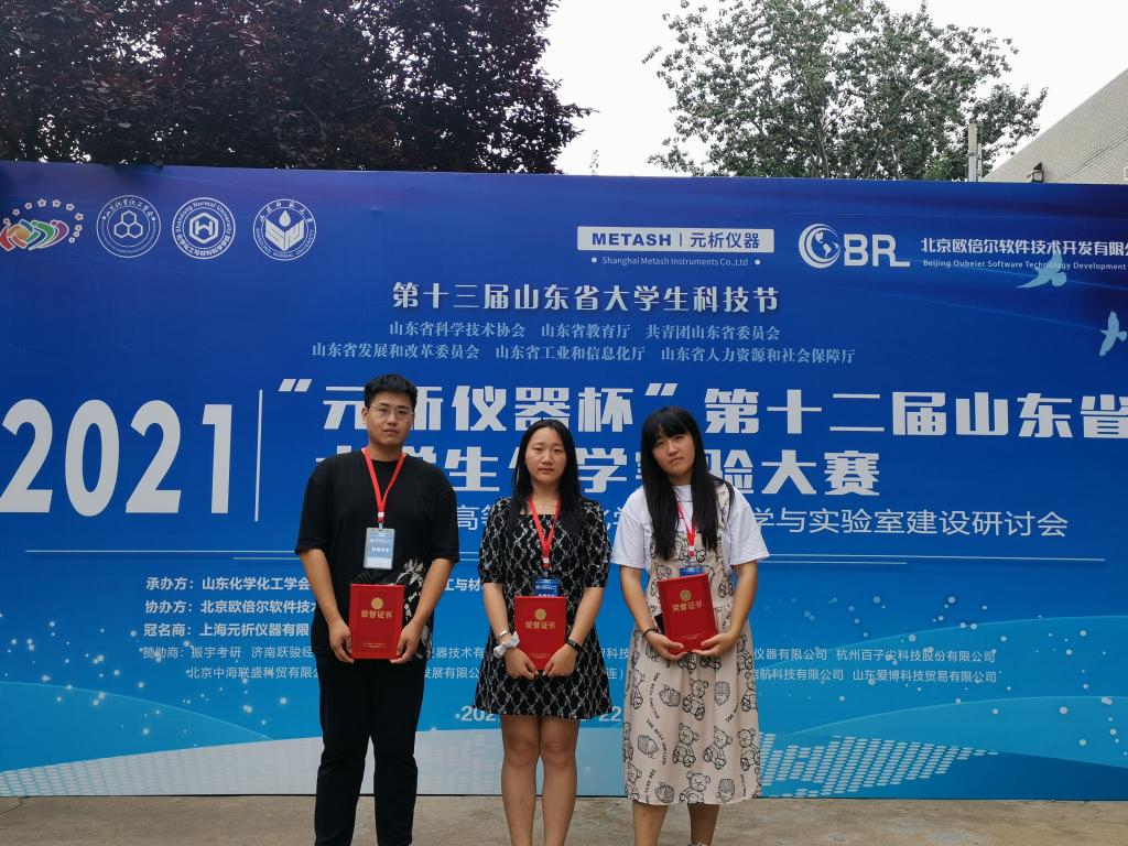 7月19日至22日,“元析仪器杯”第十二届山东省大学生化学实验大赛在济南举行,来自中国海洋大学、中国石油大学(华东)等30余所高校的100余名学生报名参赛。经过激烈角逐,我校hg8868皇冠登录入口手机版3名参赛同学荣获一等奖2项和二等奖1项。