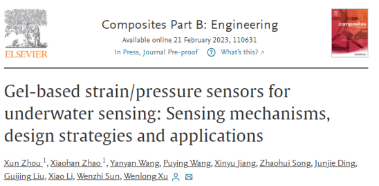 灵活和可穿戴的应变/压力传感器在水下应用中具有非凡的意义。凝胶具有可调控的机械性能、生物相容性和多功能特性,可以通过结构设计和网络交联在水下环境中获得良好的抗溶胀性能,使其成为构建水下应用应变/压力传感器的最有前途的材料之一。然而,复杂的水下环境和不同的应用场景对凝胶传感器的传感灵敏度和准确性提出了更高的要求。近年来,具有多功能水下特性的凝胶传感器已经被开发出来,以确保在水下的长期稳定传感。